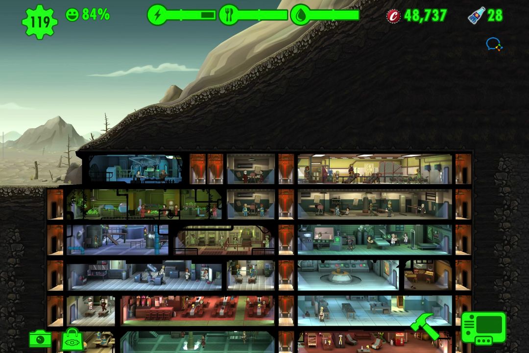游戏是好游戏,这个公司是个垃圾,当年玩的时候游戏既有更新还是个纯单机,现在还必须验证手机号,游戏已经四五年不更新了,stm上pc的还在一直更新,可惜一直没汉化。给新手说下一些重点:1、死爪出现条件是60+人口,所以武器足够好前别爆人口。2、电最重要,电有个特点是紧着周围房子给电,缺电时最先灭的是离电厂远的,所以你觉得重要的房子就建电厂边上。3、属性E最重要,E属性是所有属性里唯一可成长属性。