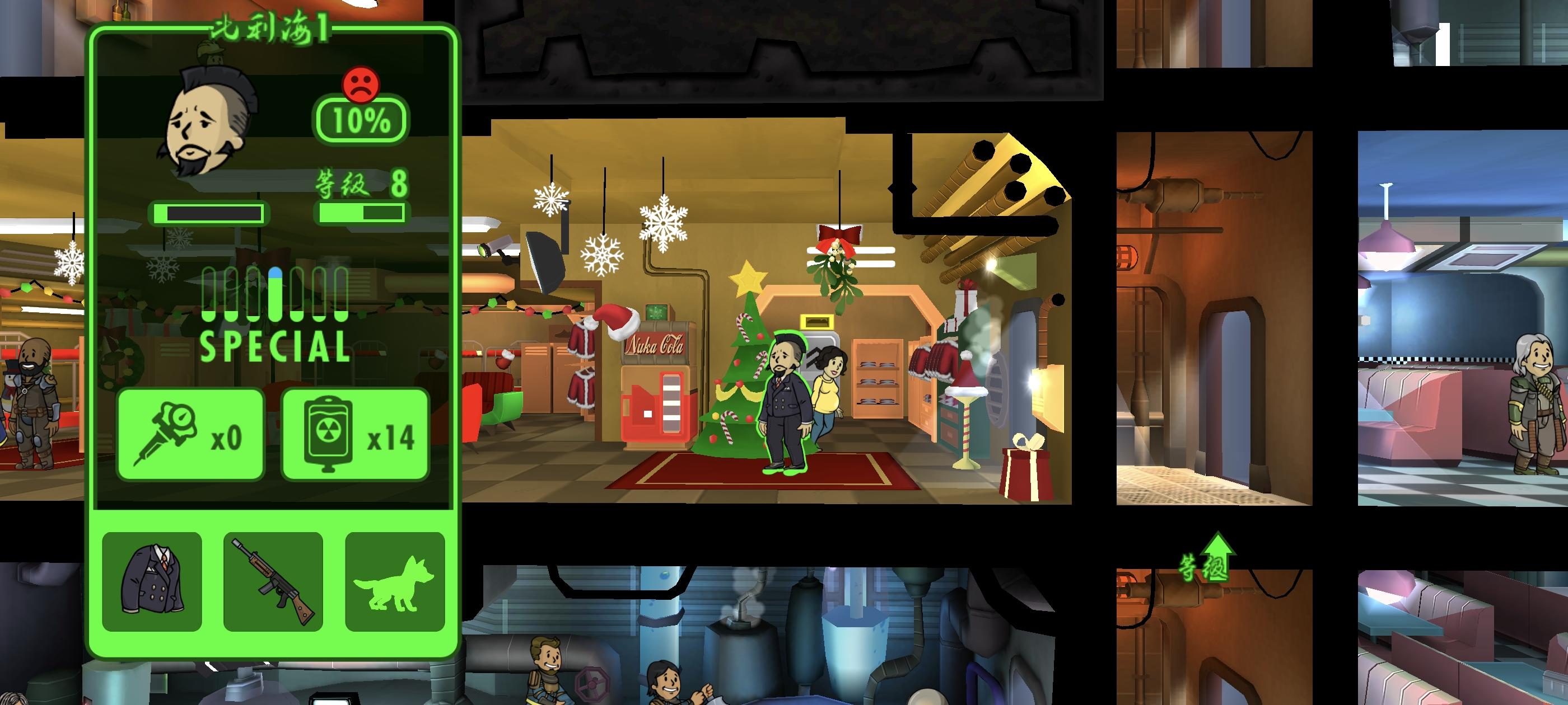 幸存者模式难点就是人一条命,各种突发事件死爪、辐射蝎子、火灾等,只要能抗住快速解决就能安然度过。布局为前四层生产建筑,隔一层中间训练建筑不要相连,两个小人的房间处理突发事件是最快最简单的,死爪、辐射丧尸就在前四层解决。仓库、房间、医院、科学院建立在最底层,各种突发事件不用管自己会消失,上面要隔一层。重要的属性E抗辐射S电量A食物在35人口时就训练高,ES“AL”属性尽可能高拉出去搞资源,药品不够就