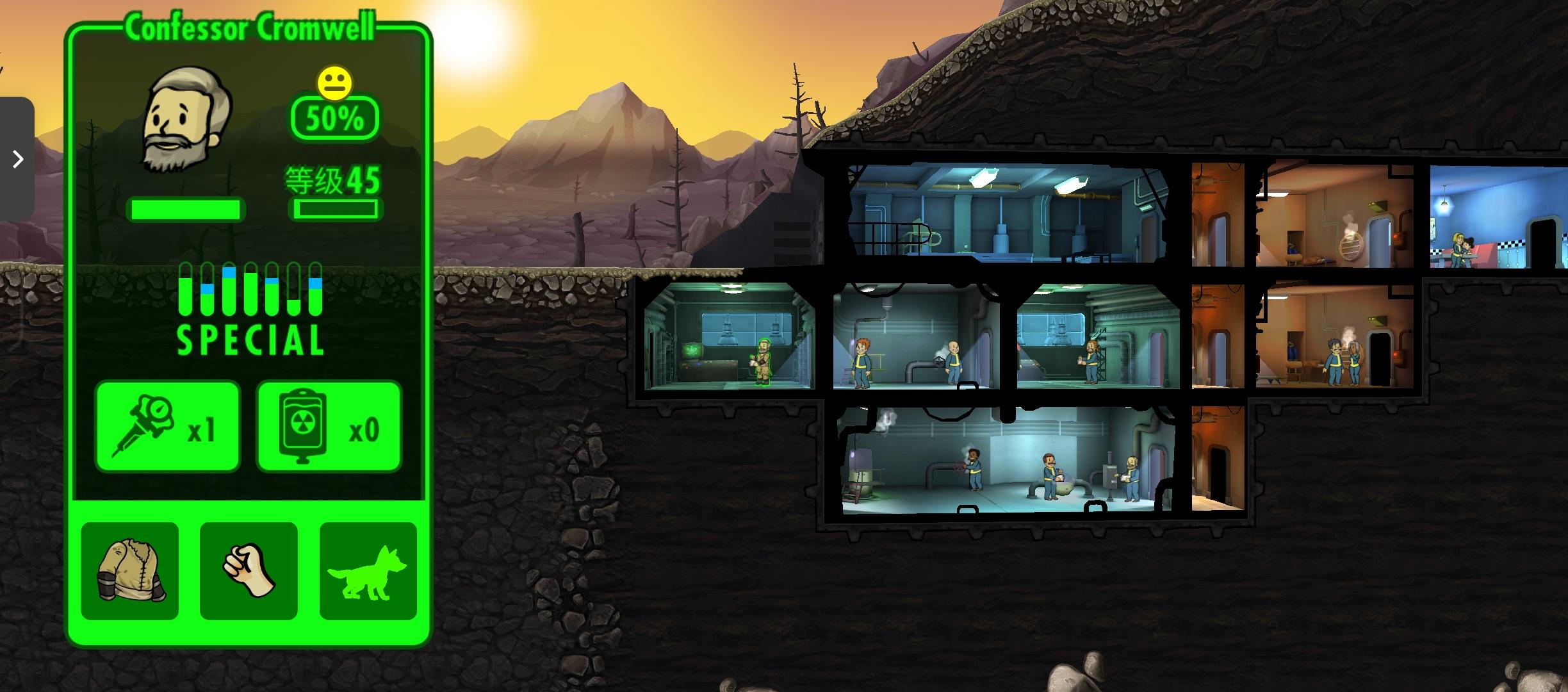 所有房间运行都需要电力,电力不足将无法训练、打造、生产等,所以要保证足够的电力,主要有两点:1.生产力,就是人,我现在有10个小人生产电力勉强够用,后期需要还会增加,因为现在有6个都去生产传奇武器加特林,所以估计需要25-30个S小人2.房间。一是房间数量,没有需要的房间暂时不要建造,平白增加电力负担;二是仓库这种不需要电力的房间放到最下边,即便电力不够,也不会影响仓储数量;三是升级(这点很重