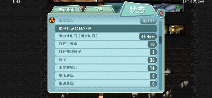 目前避难所经营目标基本达成[表情_斜眼笑]: 1. 199人口满属性从1级17E升级到50级,基本开除了初始送的金色人物,目前所有的人口都是从小孩练起的。金色小孩属性之和最高47,还没遇到过更高的[表情_思考]; 2. 每个房间按属性要求穿了特定制服,顺便都给做了我认为好看或滑稽的发型、发色[表情_酷]; 3. 有7人一组的探险队伍,分别是17s、17A、17p……等“特种”探险队,还有以9人一组