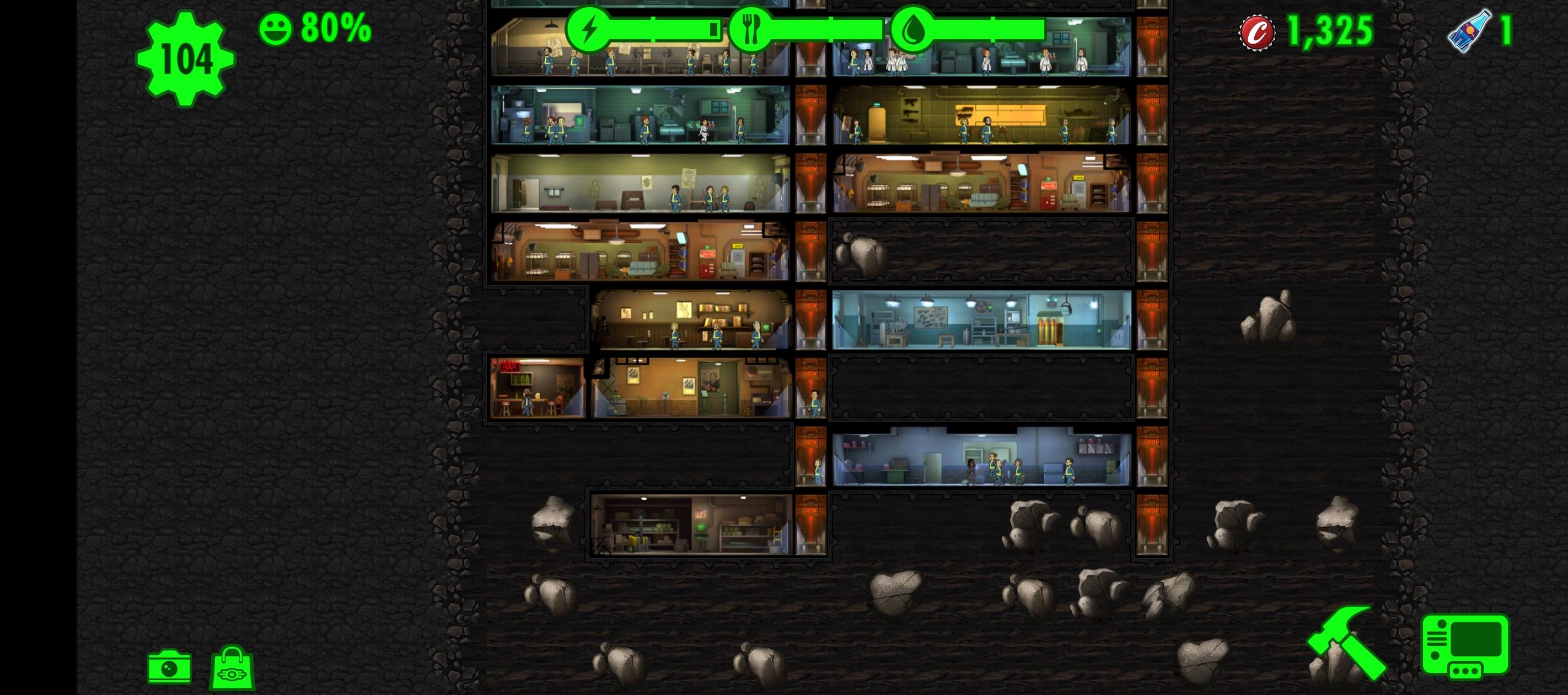 幸存者模式难点就是人一条命,各种突发事件死爪、辐射蝎子、火灾等,只要能抗住快速解决就能安然度过。布局为前四层生产建筑,隔一层中间训练建筑不要相连,两个小人的房间处理突发事件是最快最简单的,死爪、辐射丧尸就在前四层解决。仓库、房间、医院、科学院建立在最底层,各种突发事件不用管自己会消失,上面要隔一层。重要的属性E抗辐射S电量A食物在35人口时就训练高,ES“AL”属性尽可能高拉出去搞资源,药品不够就