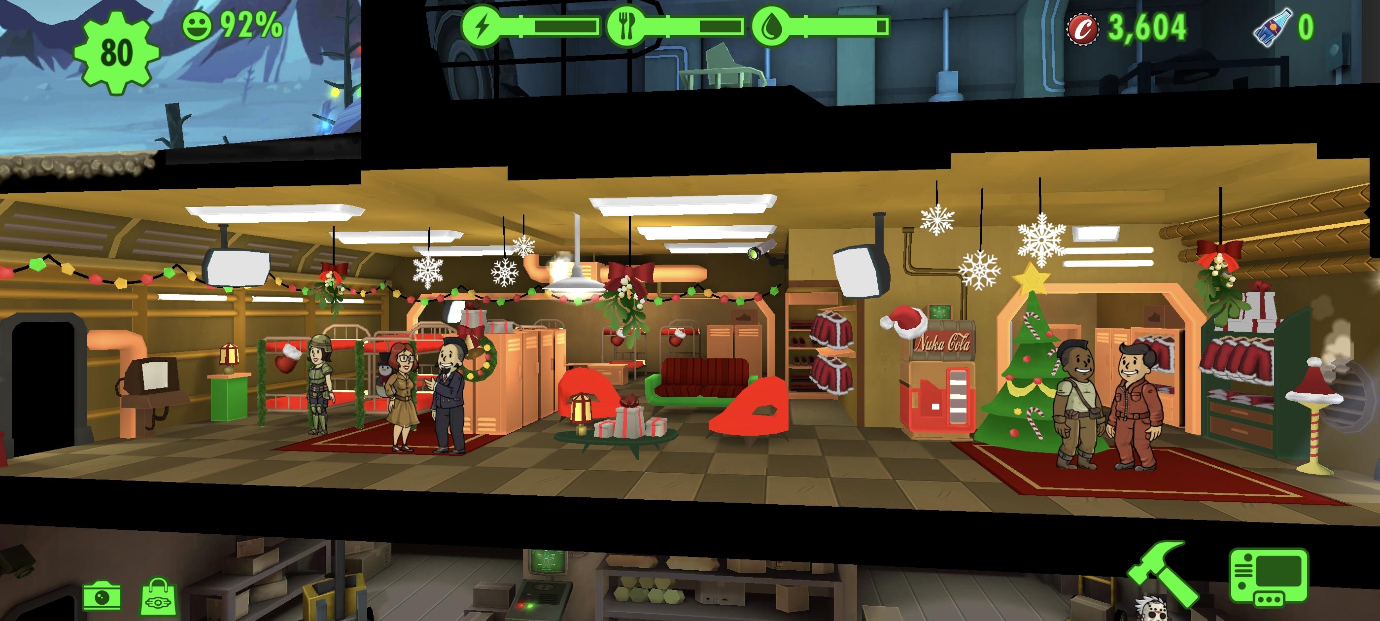 #辐射避难所新手解答 这是我分享的一个100人口以上的布局顶端战斗房用来防死爪 ,两排可乐场两排核电,提供三维,到这儿基础就已经打好了 下面接医院和消辐,武器和装备厂中间随便安插各种训练营 最后最后最下边两排满级卧室,剩下的全都放仓库,卧室跟仓库由于没人,所以紧密挨着就行,注意跟上层工作区隔开