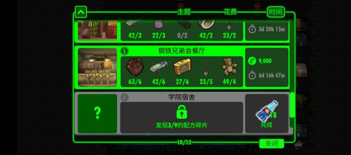 碎片已集齐,但是时间显示灰色无法打造。1.一开始以为是房间等级不够,就进行了升级,但是依旧不行,而且升级的时候提示是加速打造时间,想了一下如果不能打造的话应该和武器装备一样分等级。2.然后想到了,是不是属性不对,或者人数不够,开始加人6个6以上的S依旧无法打造。3.又考虑到会不会没有对应的放假?与餐厅对应的还有一个花园生产食物,于是建造花园,结果也不行。4.谁还有思路?可以和我说一下?