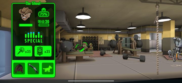 目前避难所经营目标基本达成[表情_斜眼笑]: 1. 199人口满属性从1级17E升级到50级,基本开除了初始送的金色人物,目前所有的人口都是从小孩练起的。金色小孩属性之和最高47,还没遇到过更高的[表情_思考]; 2. 每个房间按属性要求穿了特定制服,顺便都给做了我认为好看或滑稽的发型、发色[表情_酷]; 3. 有7人一组的探险队伍,分别是17s、17A、17p……等“特种”探险队,还有以9人一组