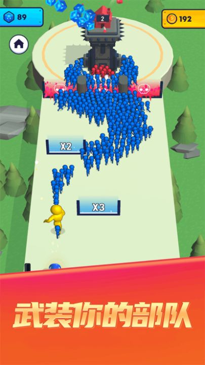 【炮灰冲锋队】是一款非常好玩的闯关小游戏,玩家控制着炮台,释放炮弹兵,在经过倍数门的时候会增加炮弹兵的个数,我们不断地壮大炮弹兵的队伍来抵御地方炮弹兵的攻击,只要我们在规定的人数到达敌方的大本营,就可以获取游戏的胜利,小伙伴们快去占领对面的基地吧。
