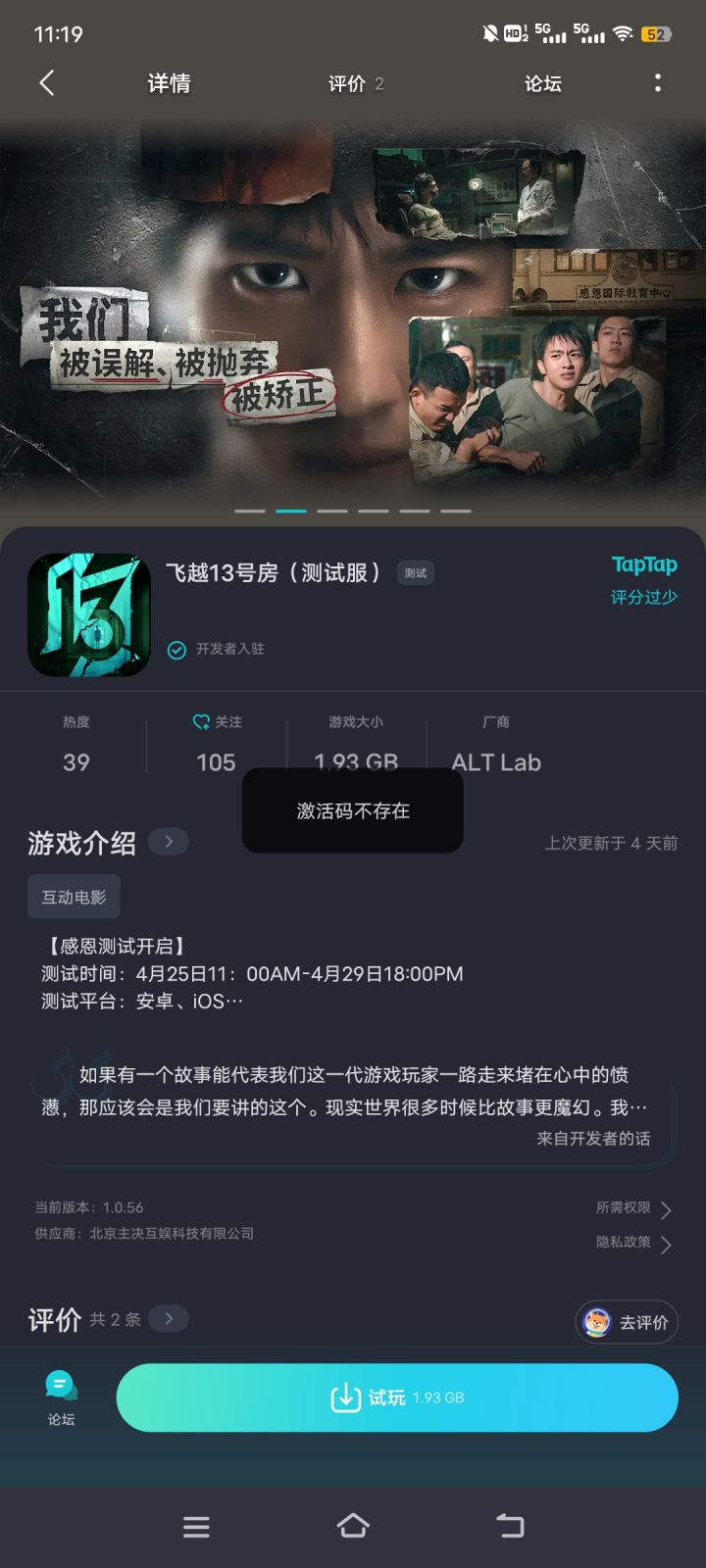 登陆taptap帐号显示该应用暂未开放