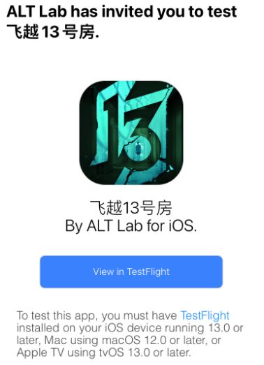 各位学员,非常抱歉!由于我们内部的原因,导致此次测试开服后,获得测试资格的iOS用户无法跳转下载。我们已经调整了游戏下载方式,请iOS用户按照以下步骤进行下载:(PS. 安卓端测试相关问题已定位到原因,目前正在处理中,今天内也会发布相关的下载指导公告,请大家不要着急,再次对还在等待的大家表示深深的歉意!)《飞越13号房》已经向您填写在招募问卷中的邮箱地址发送了测试邀请,请您查收包含下载跳转链