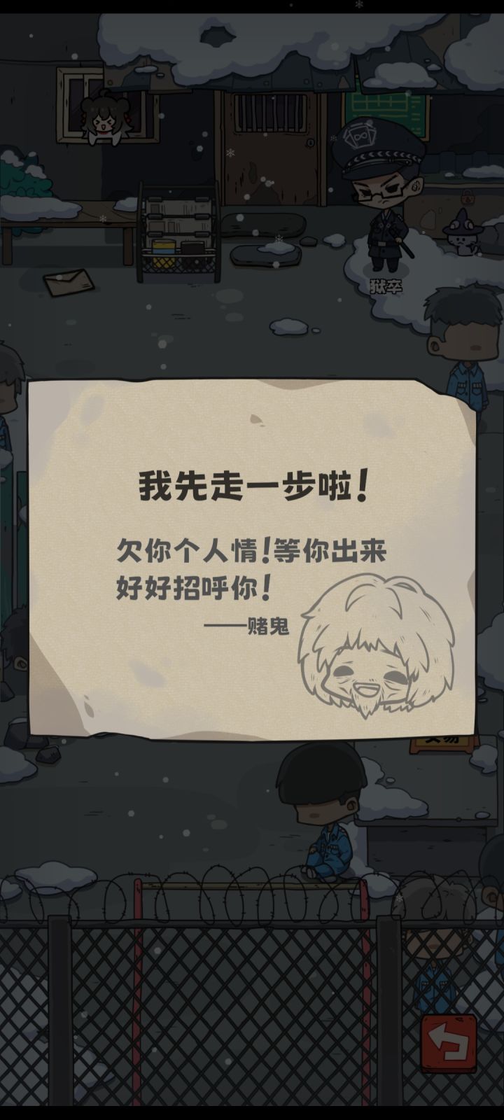 首先,必须把赌鬼的好感不用刷满的。实行的话,就是给他十张ssr卡,然后如果他赌成功的话,就会出狱。等狱警触发剧情告诉你,他已经离开的时候,你再去他原本的地方,就能找到一封信。点击信就可以获得活菩萨成就。
