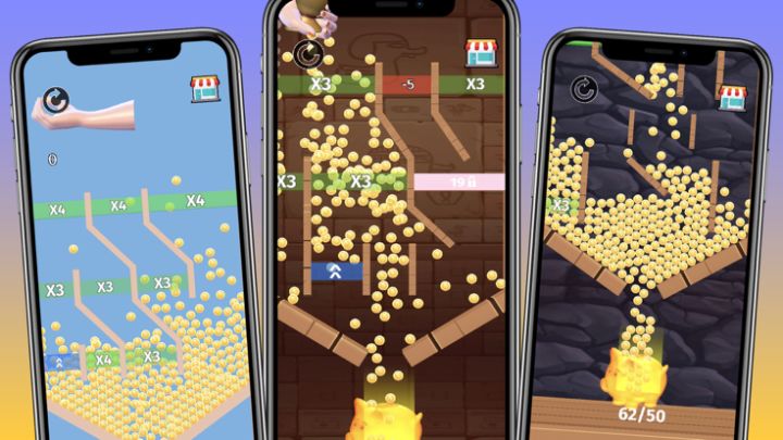 Drop the coins from the cup through the bonuses, to multiply and increase them in the best path possible and unlock the challenge at the end of the level.