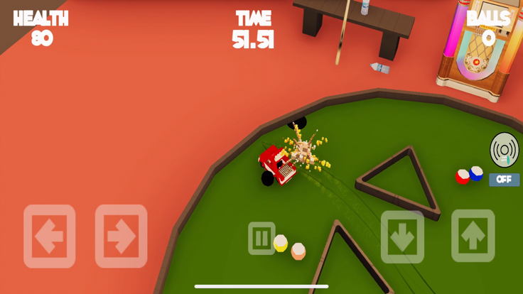 * Levels, Sink all the balls before time runs out, or you damage the car to much!!