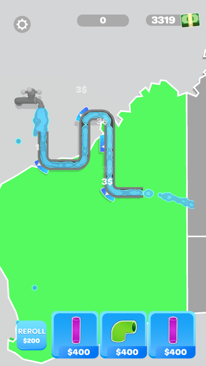 Connect the pipes and make the water flow. The more it flows the more money you earn. Reach every state on the map to complete the level.