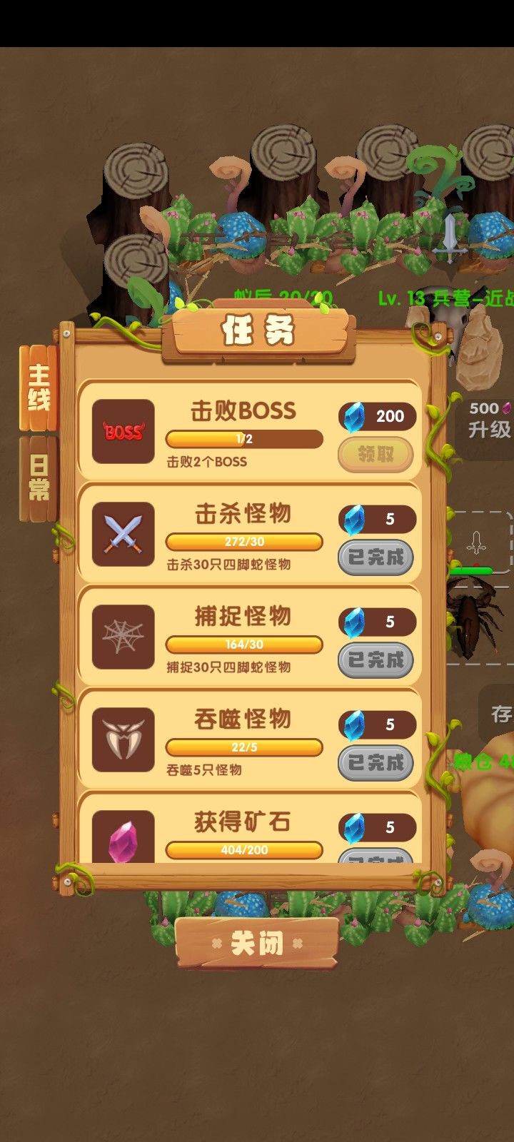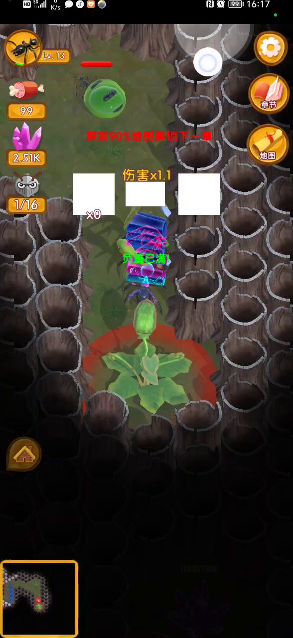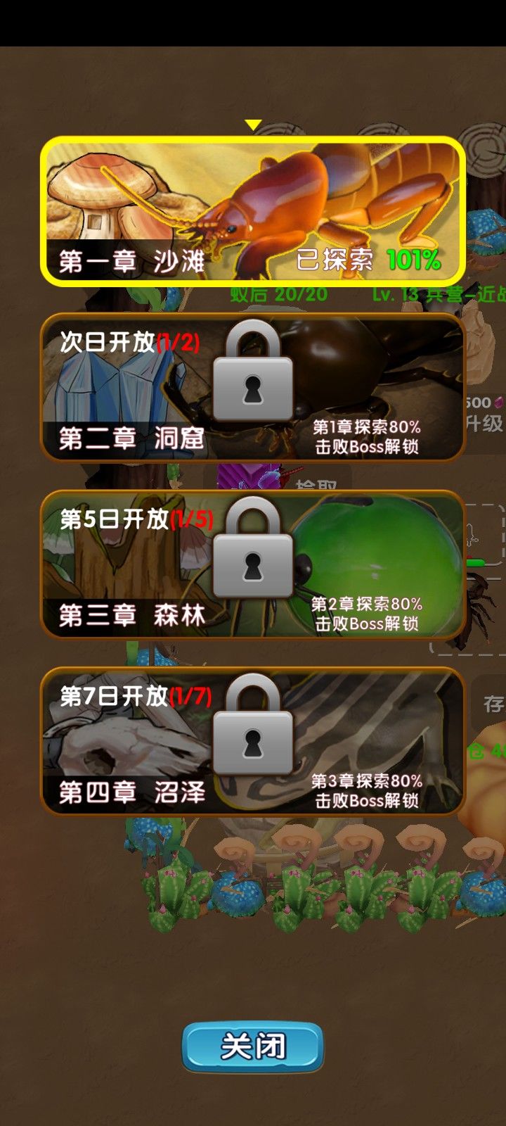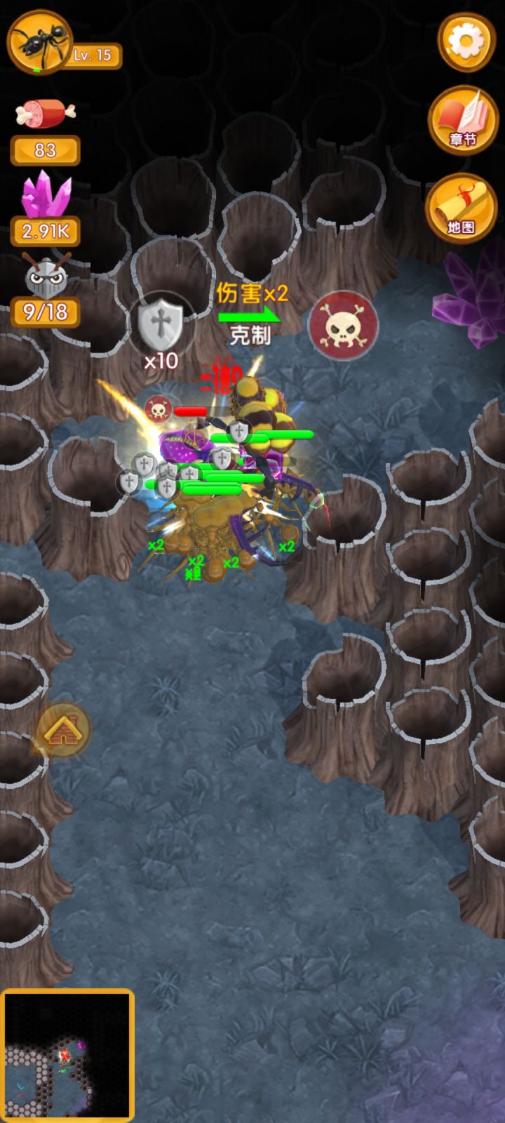 各位玩家们好~相信大家看完我们的已经对我们的地下蚂蚁世界有了一定的认知和了解,那么接下来我将继续给大家带来进阶的新手游戏攻略✿✿ヽ(°▽°)ノ✿章节每一章的地图探索度达到一定程度并且打完BOSS就可以去下一个章节了;一共有四个章节,本次新手攻略我们主要介绍第1章节的攻略。实战篇然后就是给大家分享一下本蚁一路冒险下来得出的经验~探索的时候击倒敌人,敌人头上有蜘蛛网的就是击败后可以捕捉的,捕