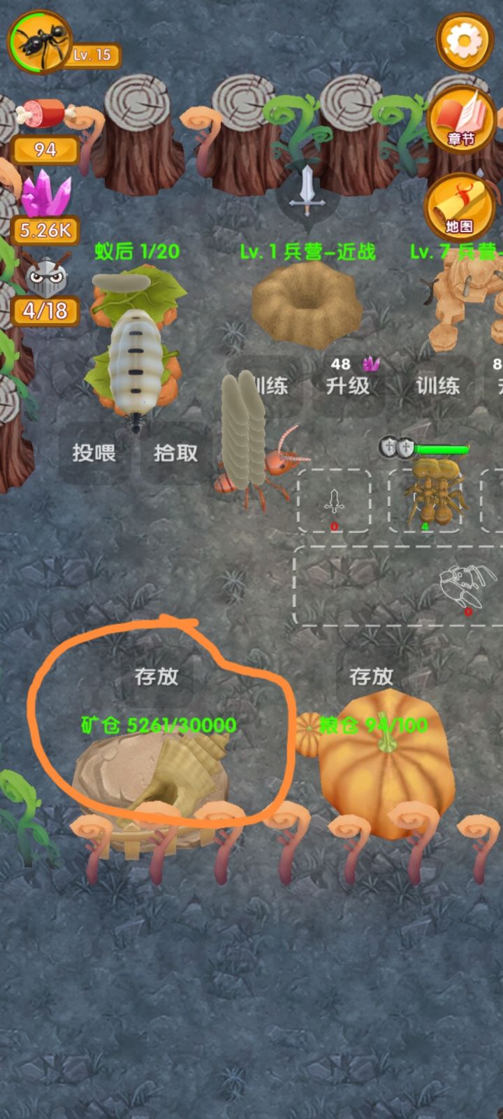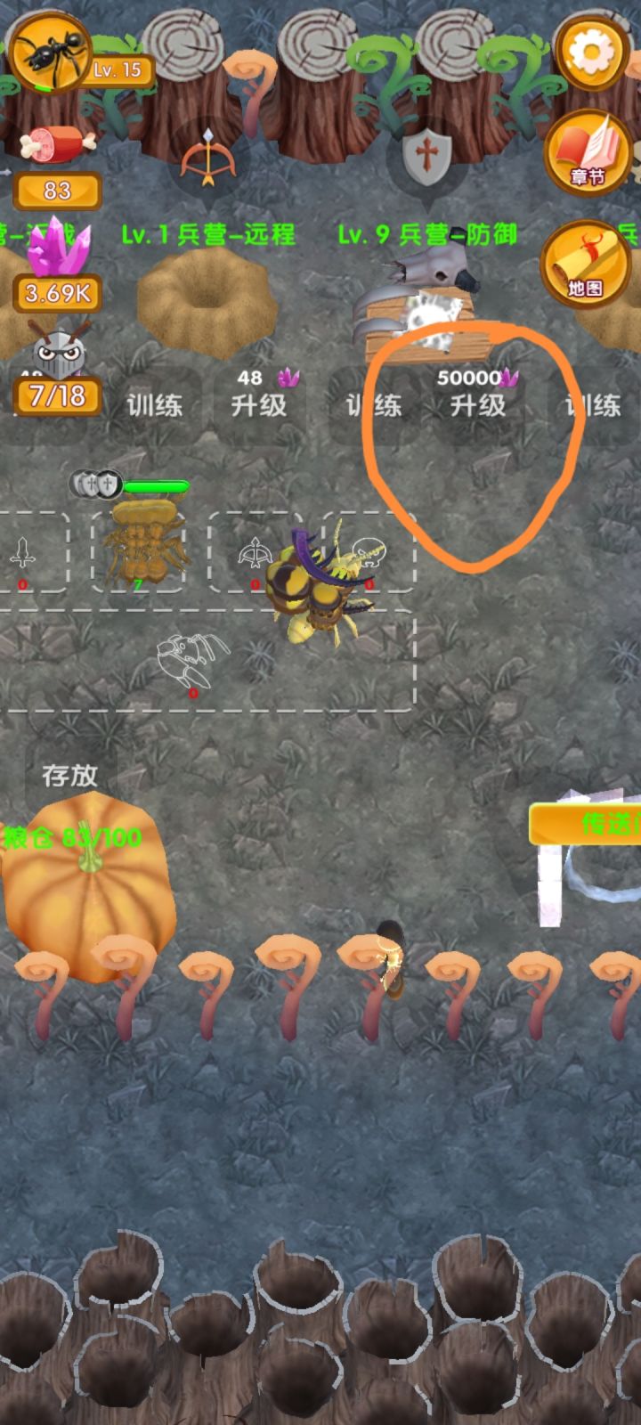 一天通关的,有什么不对大家可以指出来。首先游戏中的蚂蚁分为近战、远程、防御、毒液四个兵营。兵营满级为9级,第10级时兵营升级需要5万矿石,但我们的矿石上限为3万,所以兵营满级目前为9级。(我们拥有无限复活,指挥官等级越高,可以带的兵越多)而近战、远程、防御、毒液这个四个兵营的名字并不是蚂蚁的攻击模式(蚂蚁全是靠近打怪),而是蚂蚁的属性(就如同水克火,木克水这样的属性)而具有属性克制的时候,