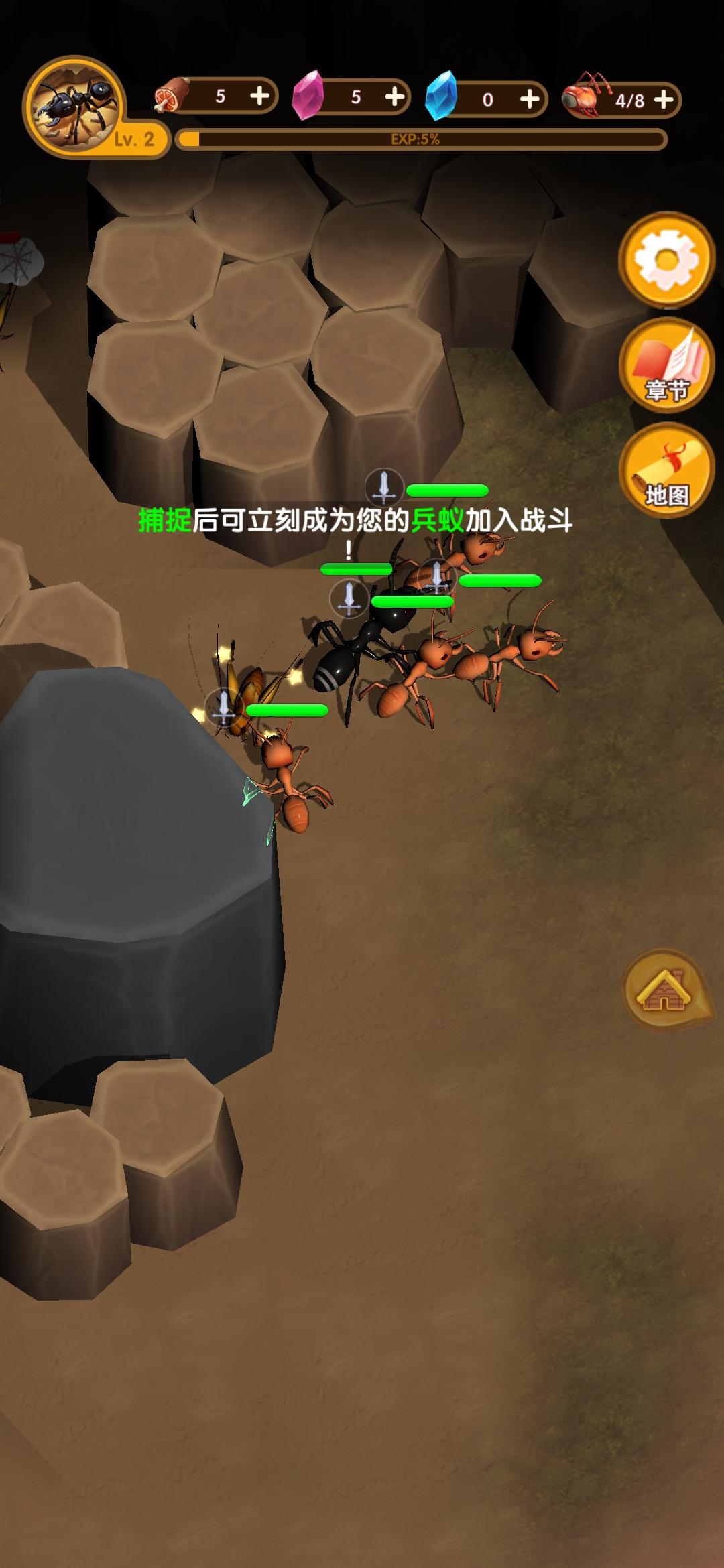 各位玩家们大家好!我们《蚂蚁大冒险》的第二次测试已经在今天如期和大家见面啦~本蚁也是在昨天就连夜体验了我们新优化后的游戏,并且也是马不停蹄地写好了一篇较为详细的新手攻略,希望能给大家在本轮游戏测试的体验中,带来一点小小的帮助✿✿ヽ(°▽°)ノ✿1、资源篇矿石-游戏内的矿石都是用来提升兵营的等级的,可以提高兵蚁的攻击力,然后在地图上的很多地方都有矿石,一定要采集矿石,也可以召集工蚁帮忙采集果