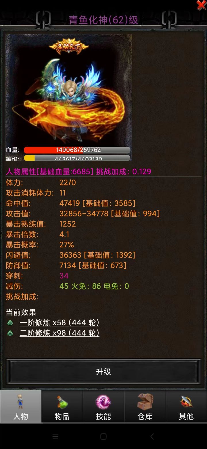 一个半月打到十一阶,三阶待了半个月,也是头疼,直接上干货吧。新手村前十级可以升攻击和血量,这样加点可以速过新手村(基本上萌新都会在重生一次,人生嘛第一次总会犯些错,不过没关系,游戏可以重生从头再来,什么时候重生后面有讲,如果想一次到位全加命中或五级攻击五级命中),商店买装备,武器两把,提升十级嗑药打邪妖。出新手村武器装备异宝打一套后直接冲到二阶,二阶打一套冲三阶,如果武器好装备不用刷齐一套,直接打