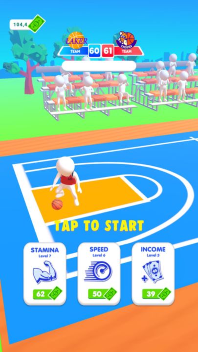 ◉ Upgrade the features of the basketball player and win the match