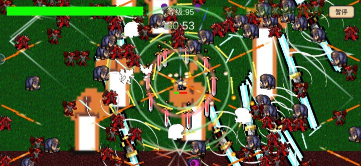 无线关卡:94级所有技能满级,随之而来的卡顿也出现了,怪物一多满屏都是,本来想发个10来秒的视频发现这没得发就算了,大家自己体验下, 个人感觉无线关卡比推线关卡有意思 建议:作者大大有空 多整几个技能、 屏蔽伤害字幕、技能特效