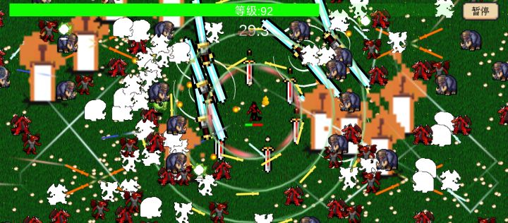 御剑术好爽啊,一扫一大片,遍地都是经验。可惜后面四面八方全是怪,自己也朝着四面八方飞剑,节奏把握不住了。最多玩到17级,不知道第一夜有多长,晚上再试试