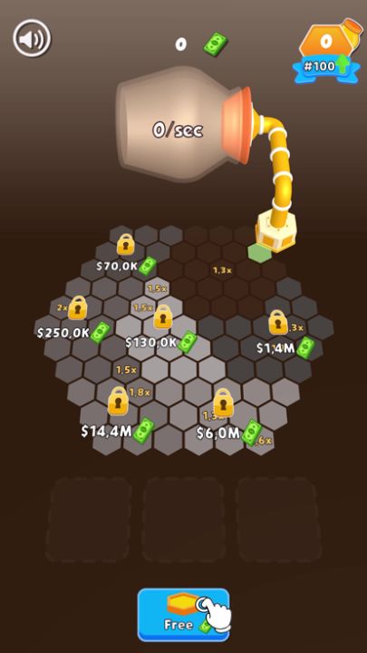Do you want to make honey like a bee? Arrange the honeycombs on the grids as you wish and start the production. Tap fast and your combs will make more honey. Is it good to own the honey farm? Click more and earn money.