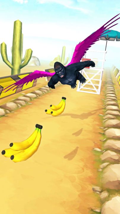 这只猴子正在执行飞行任务,而这只黑猩猩正在执行任务,他必须通过多个障碍物。 在穿越障碍物时做一只有趣的大猩猩,收集食物、硬币等等。 今天开始飞行!