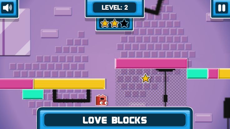 游戏中,2个彼此恩爱的方块被分隔两方,帮助他们克服一切的艰难险阻,成功团聚在一起!