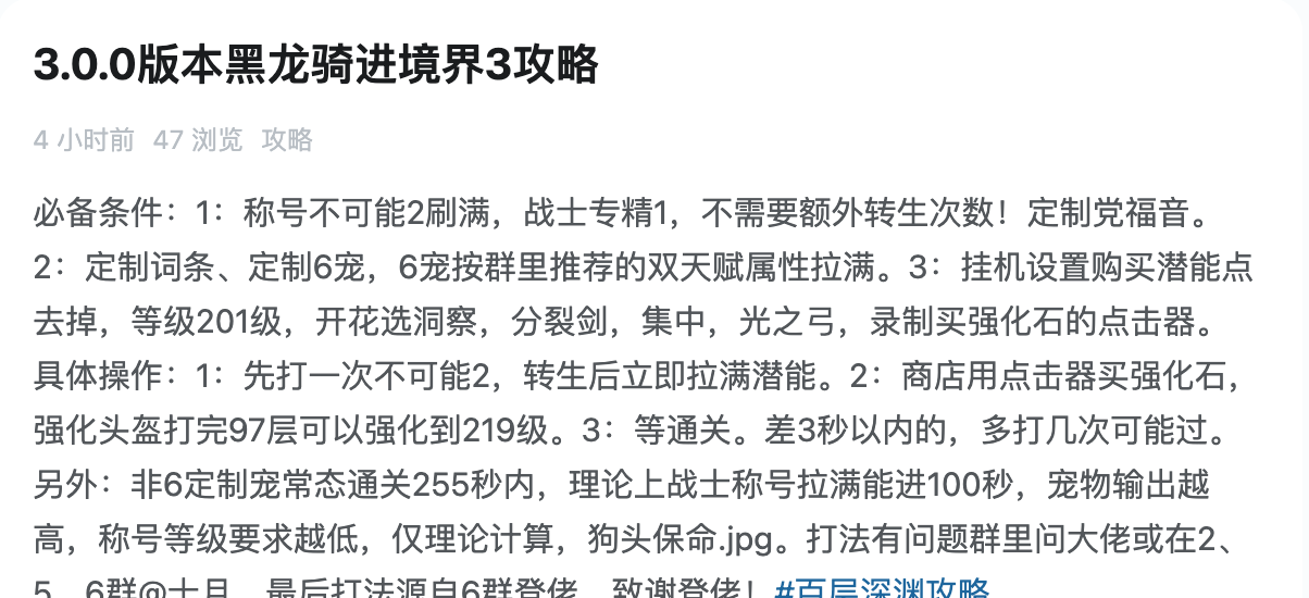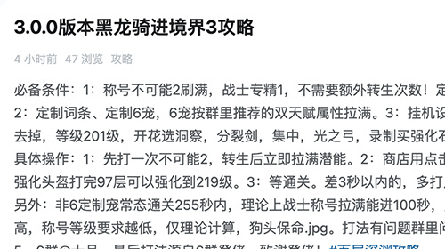 3.0.0版本黑龙骑进境界3攻略