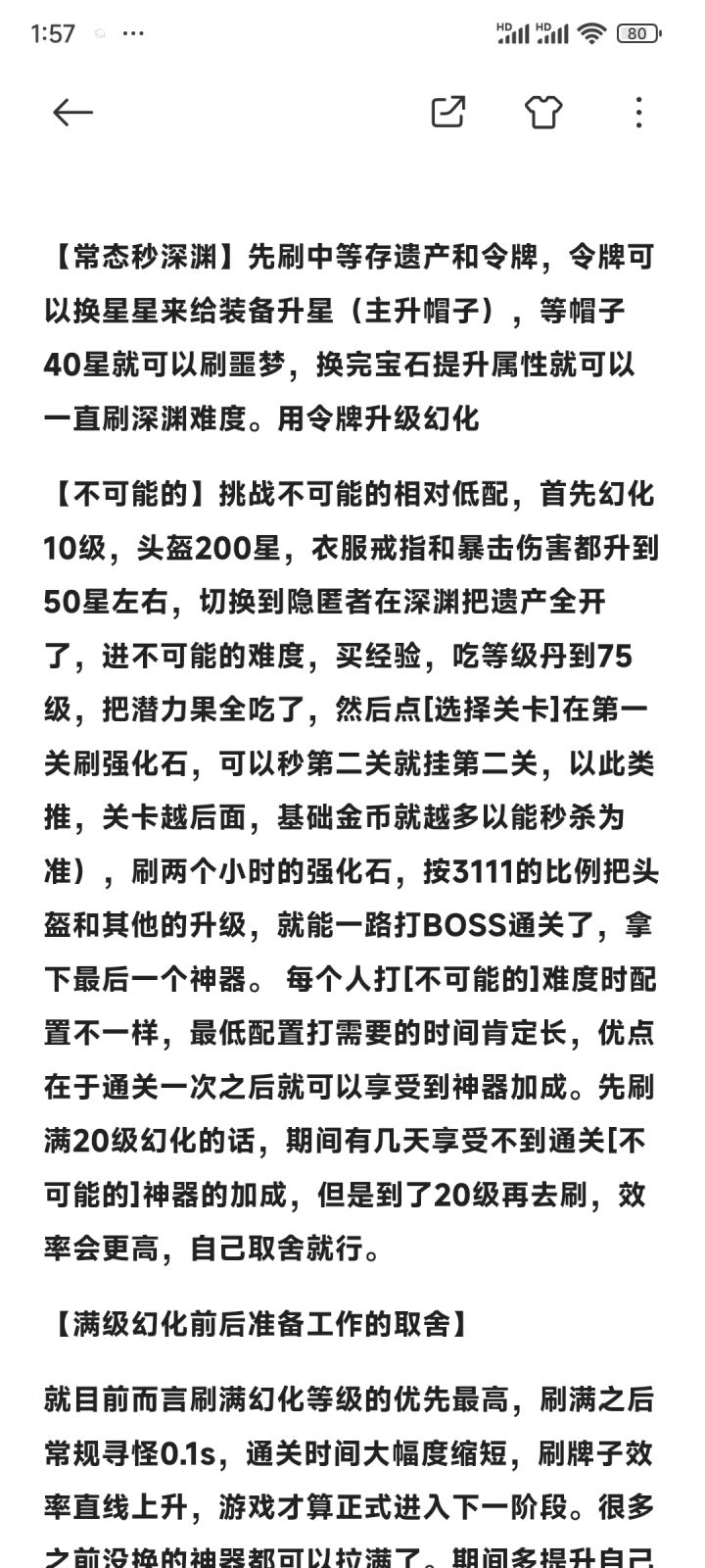 总结了一下当前版本相对详细的新手攻略,字数限制内容全部以截图的形式发在封面里了,如果还有疑问的可以进群问#百层深渊