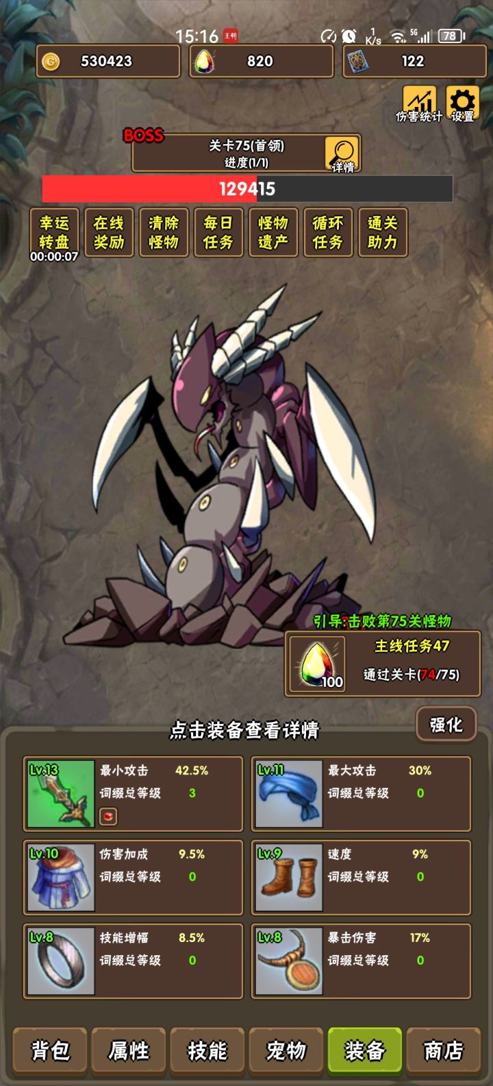 深度角色养成,多样技能搭配,让每次挑战都充满新鲜感。独特的宠物合成系统,策略与乐趣并存。自动化战斗解放双手,享受战斗快感。精美画面与震撼音效,营造沉浸式冒险体验。丰富活动与奖励,持续激发探索欲。