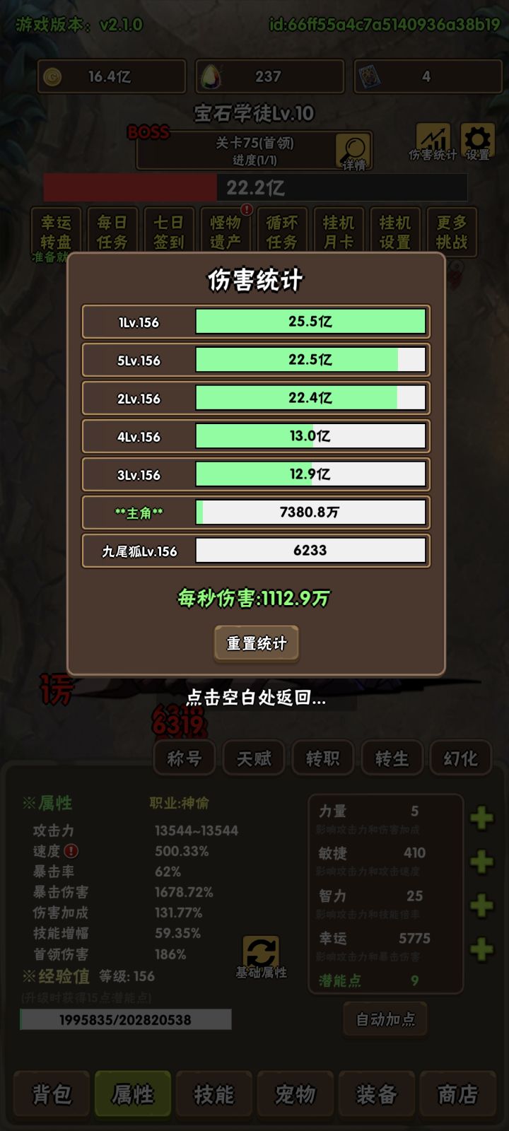 #放置挂机 #游戏推荐 #百层深渊攻略 本人是一个资深的游戏探索者,上传图片只是为了证明真实性,话不多说各位入坑萌新开始跟着我的攻略划重点!!!本攻略重点针对境界一最后难度不可能任务首通! 重点一:职业必须神偷(转生20次可以开启)神偷五十级技能经验之手是核心,直接影响等级其他所有技能没有意义。 重点二:宠物配置,一只九尾狐(纯辅助没要求),五只变异凯撒大帝,凯撒大帝攻击资质本人通关时最低的
