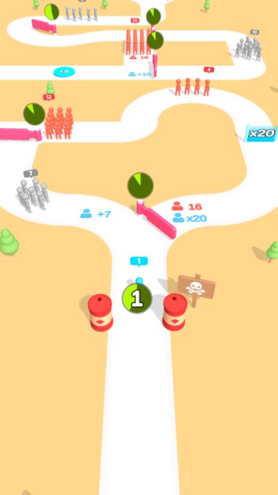 Grow your army, turn and fight by choosing the right paths