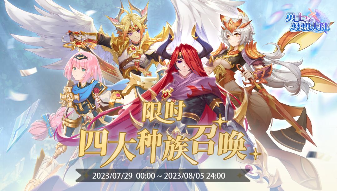 亲爱的勇者大人: 塞拉来播报最新的暑期8月活动啦~ 全新的夏日暑期活动“种族卡池”将于7月29日开启! 种族卡池轮替,轻松获取您想要的英雄! 1)种族卡池。活动期间将每两日轮替种族卡池,可用钻石和全新道具种族招募券抽取,保底30次必出SSS+英雄!还可以附加抽取星魂、顶级碎片等稀有道具! 2)每日登录。每日登录即可每日免费领取一枚种族招募券,用于限时卡池抽取! 3)种族招募礼包。在活动期间,可以购
