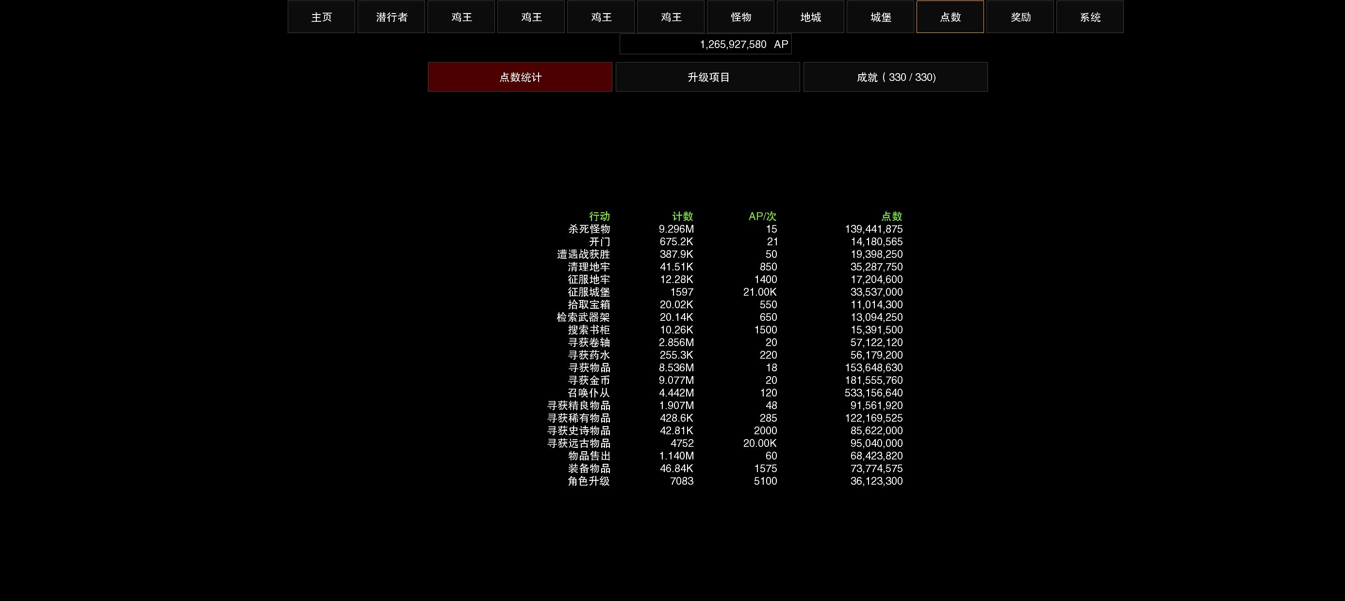 终于全成就了,剩下的就是继续挂机,看看这游戏的尽头在哪儿了最终的挂机队伍是4个鸡王加一个盗贼开箱子