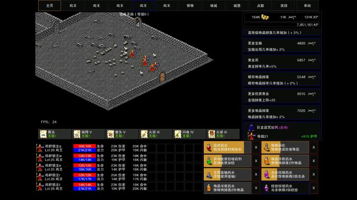 鸡王技能全满一共7只小鸡+1只小鸡护卫五鸡王40只鸡,小鸡还有一定几率变忍者鸡,盗贼鸡,野蛮鸡。40只鸡群殴效果堪比法师范围技能,还不耗蓝,基本怪还没到你跟前就全死光了挂机六小时下来昏迷次数基本不超过100唯一缺点就是没有盗贼不能自动开箱子
