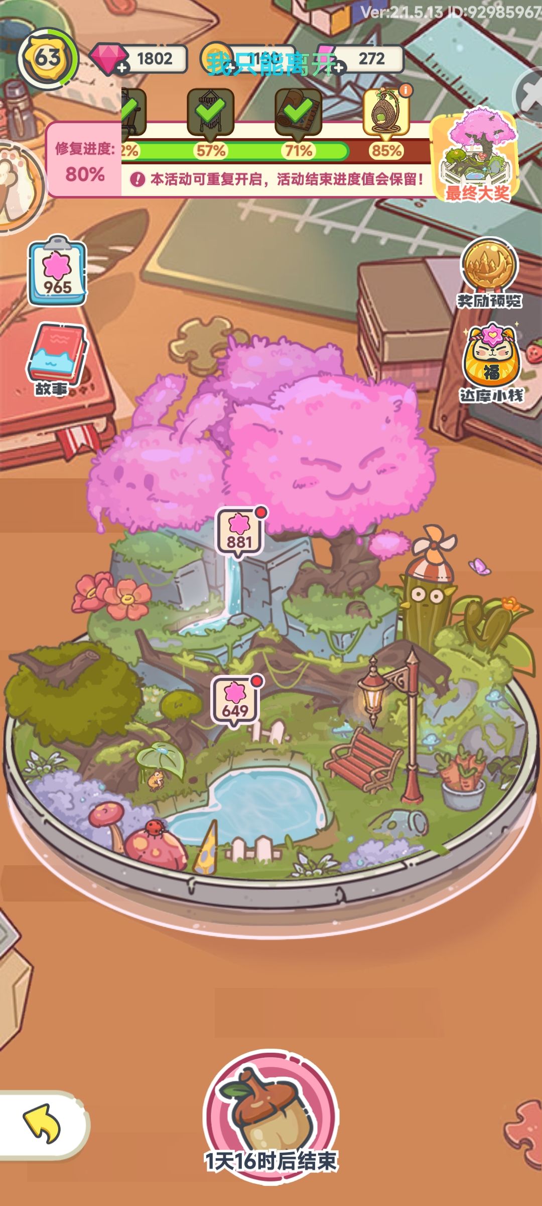右图5级深加工方木,点击出1级木屑碎屑,然后5级深加工方木变成4级半加工方木(注:这里的树哪怕是最高级也只会产出一级的木头) 左图任务是8级纸质品,要2^7=128个木屑 n个木屑需要点出来8n+1个1级木头。任务是8级纸质品,需要点出8×128+1=1025个一级木头。 也就是我才刚50级,做一个任务里四个物品之一,至少需要点出1205个一级木头,但实际上由于冷却多出来没完全合成的木头会占格子,