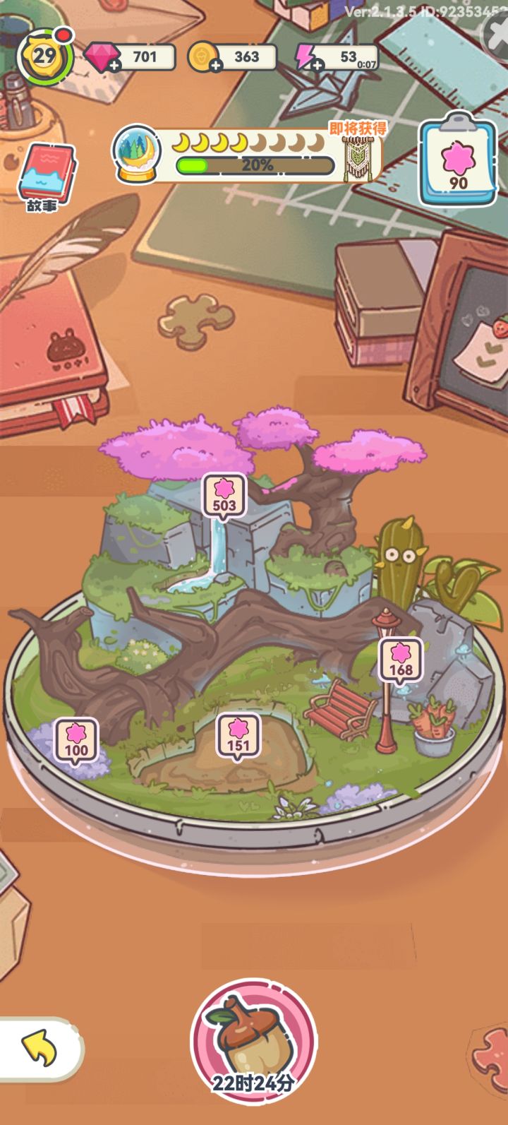 Q:升到25级一共需要多少碎片A:3+6+9+12+15=45Q:拜访好友员工宿舍可以拿到几级物品?A1:1-3级,最高3级,每个好友一天只能拿一次物品,可以不断刷新进入得到更高级的物品。A2:油漆、木板建议薅好友,自己累计会很耗体力哦。Q:装扮券来源?A:重复获得装扮或皮肤、广告每天看三个共150、tap签到每隔一天获得一次。Q:活动什么等级开?A:露水33级、橡果39级、农场在