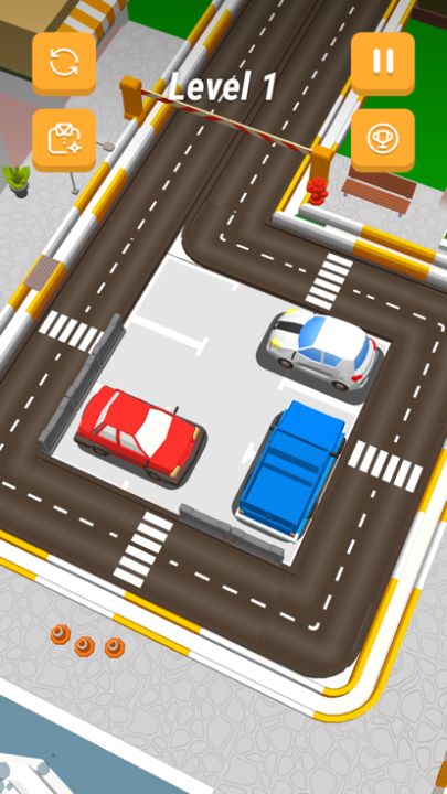 Take all the cars out and sort this mess, a car parking puzzle in which you have to take all the cars out of the parking lot