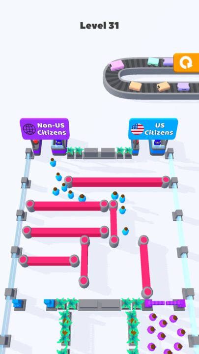 They are waiting for you! Arrange the organizers in the correct positions to direct the passengers to their designated security gates!