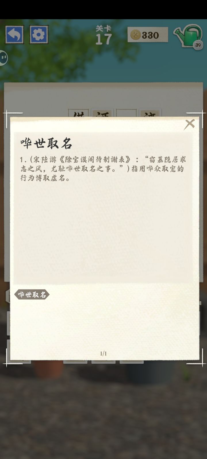 自认为自己的文学修养还可以,但玩这个游戏遇到了滑铁卢,成语真的太偏了!!!个人觉得完全没必要为上难度而故意出这种百度都不一定能百度出来的成语,完全可以出那种书面及日常用的比较多的成语、再少量带一点不常见的,这样市场也比较大,而且玩家玩起来才觉得有意义。说实话,听都没听过的成语知道了有什么用啊,还每次都是这种偏僻词,弃游吧。