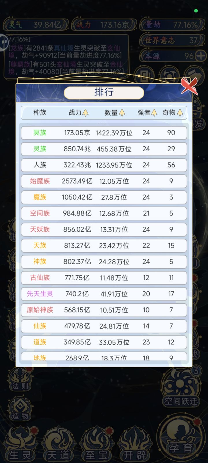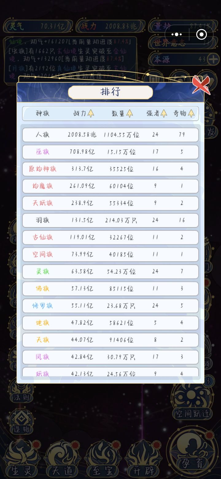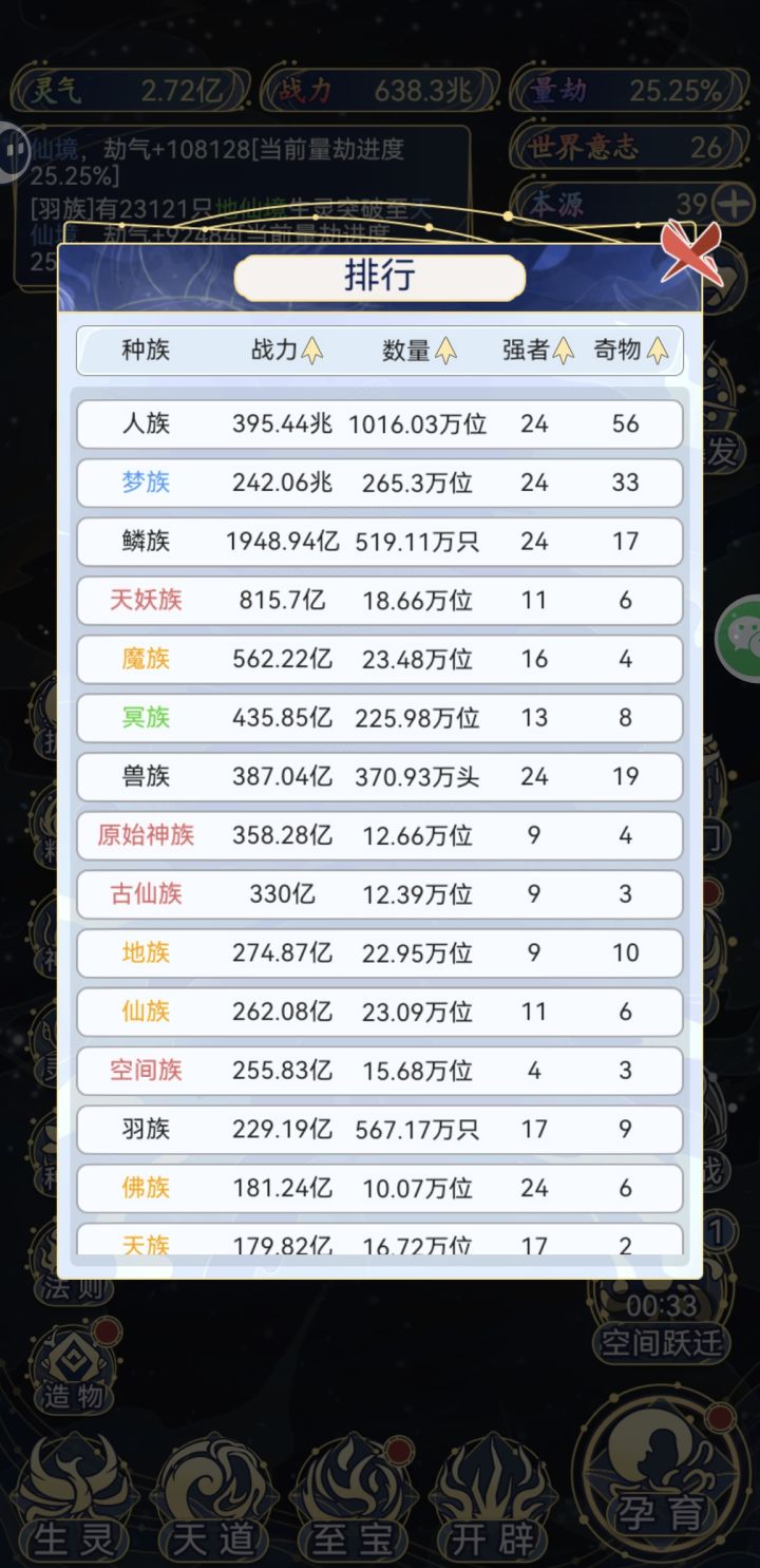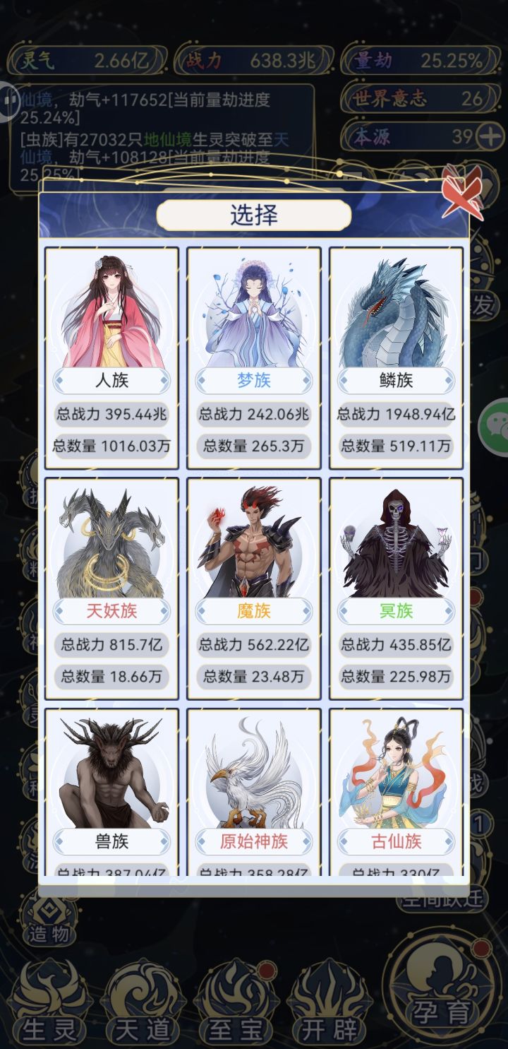 - 后期重复度高:核心“孕育-养种族-吞世界”循环固定,大千世界后无明确目标,仅数值堆砌,缺乏随机事件/剧情等深度内容,长玩易腻。