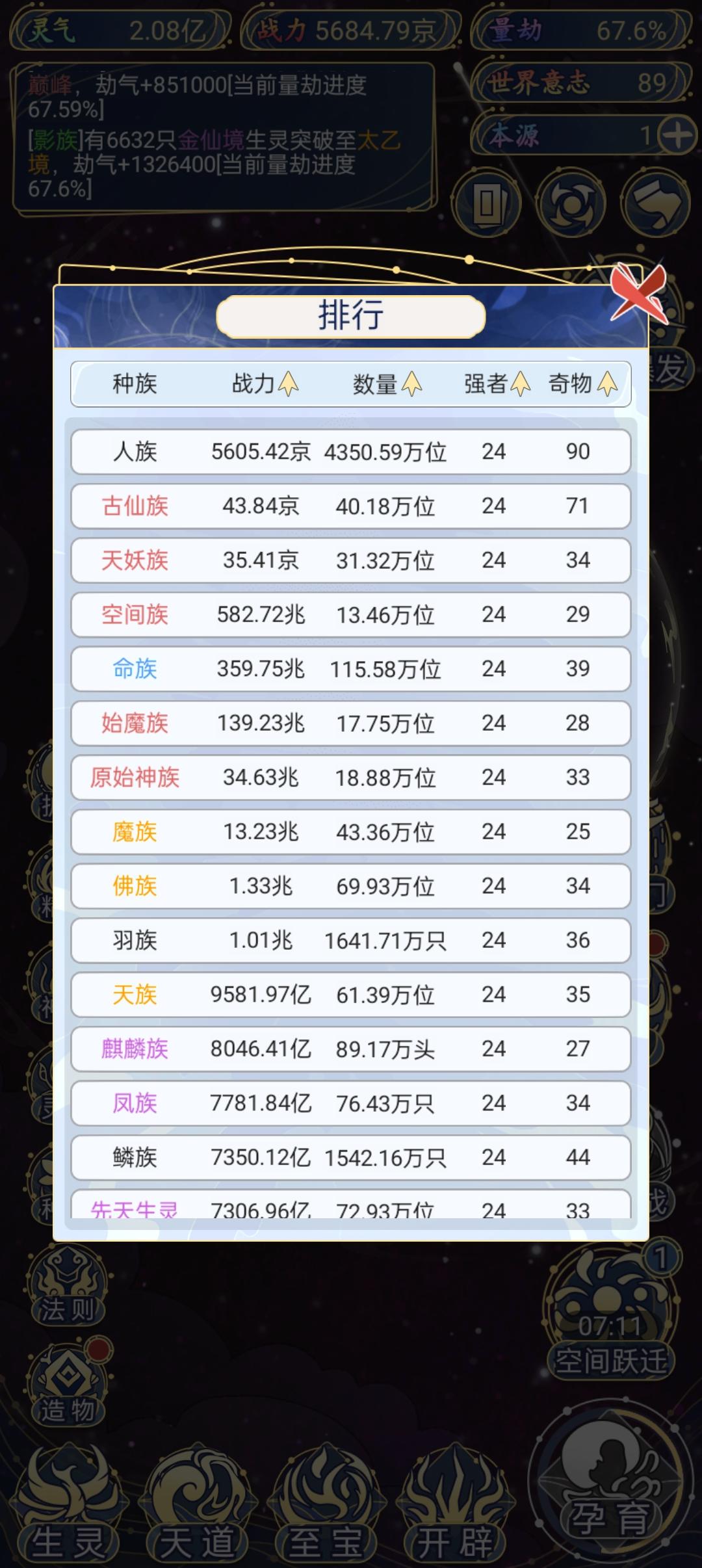 族群的话就开始的人族直接怼就可以了,因为人族是普通族群,基数比较大,达到一定战力用本源开启福佑,战力直接翻倍。