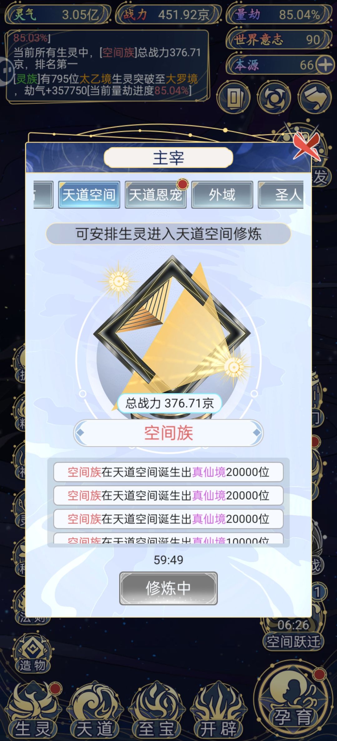 天道空间主要放红色级别的种族,这里是新增人口,不是原人口数量突破#天道创造攻略 #天道创造