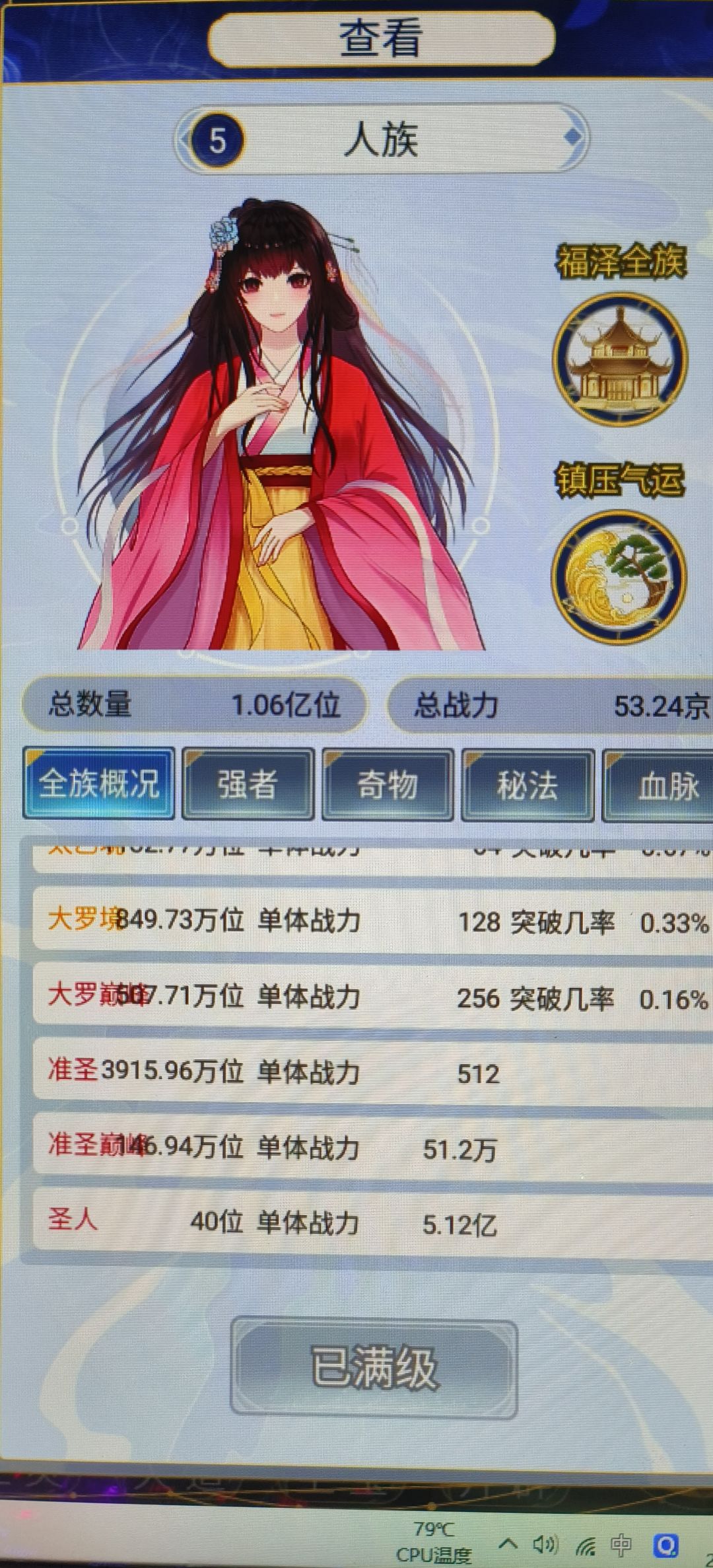 1族模式(目标:人族准圣巅峰个数≥1e9)