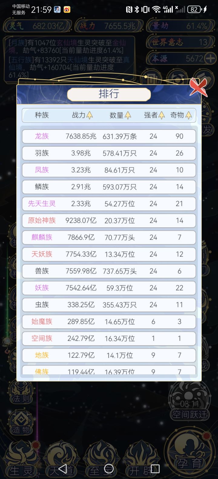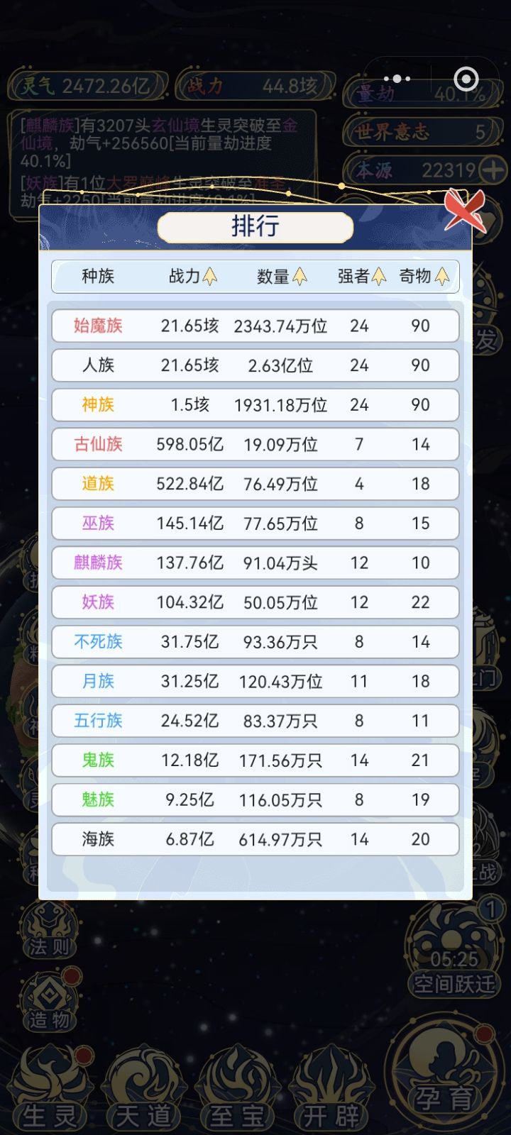 本来我的古仙族只有1兆的战力,今天在主宰的生灵大战里用古仙族单挑了其他战力靠前的族群,完事后发现战力突破150兆了,不知道是不是就这样还是BUG。