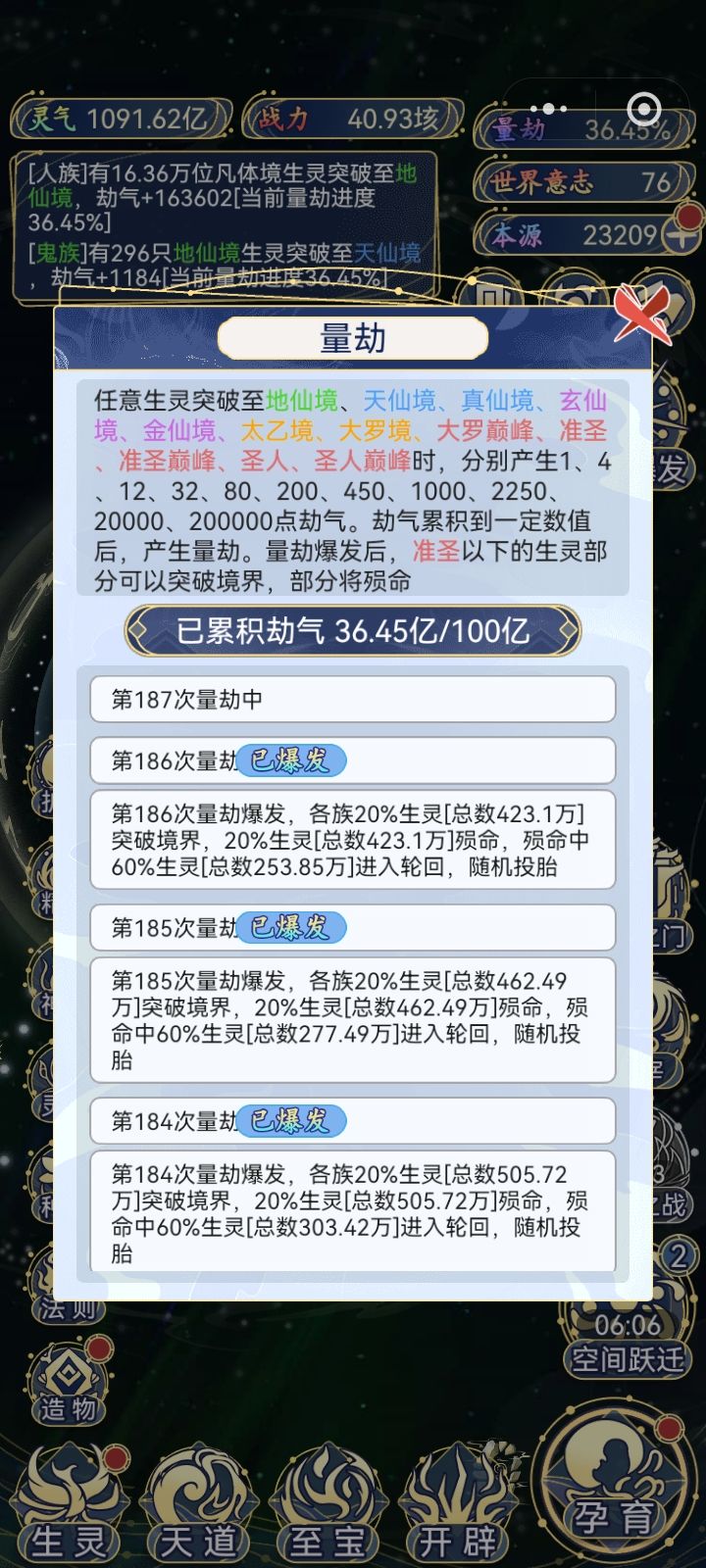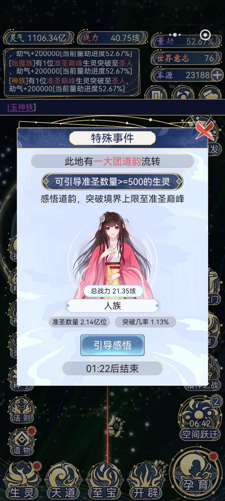这边也是玩了一段时间啊 想培养其他种族来着 奈何人族太强了 十二倍气运实力4096倍 超脱族最低一气运都要1000亿 人族就1亿
