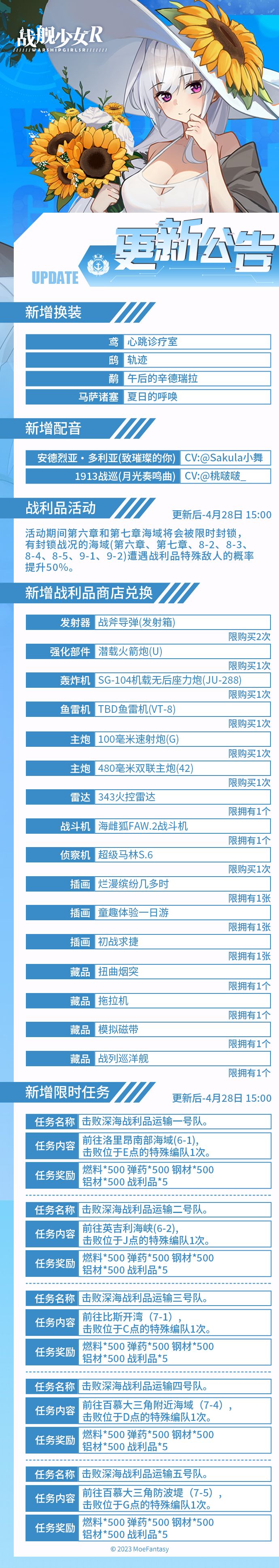 2023.4.14 不停机更新公告 & 战利品活动公告