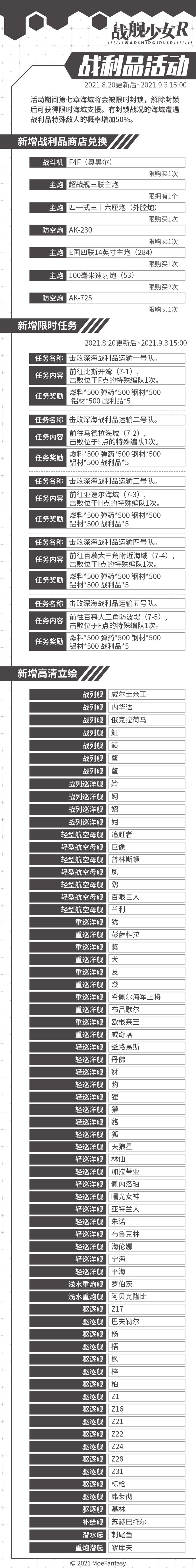 2021.8.20 不停机更新公告 & 战利品活动公告