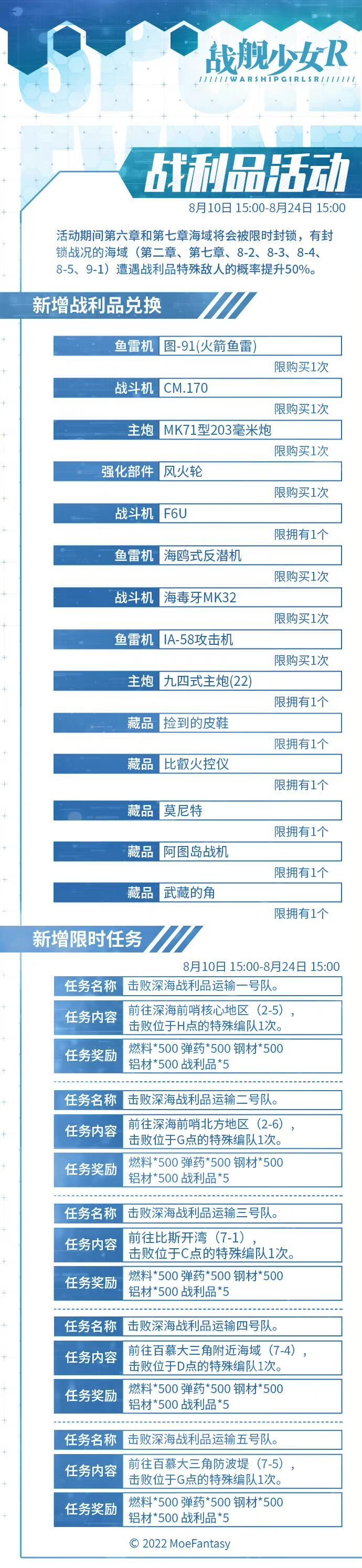 2022.8.10 不停机更新公告 & 战利品活动公告