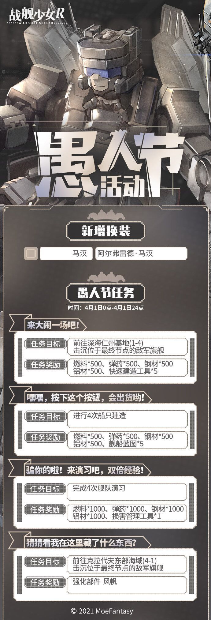各位玩家,我们将于4月1日00:00开启愚人节活动,具体内容如下: