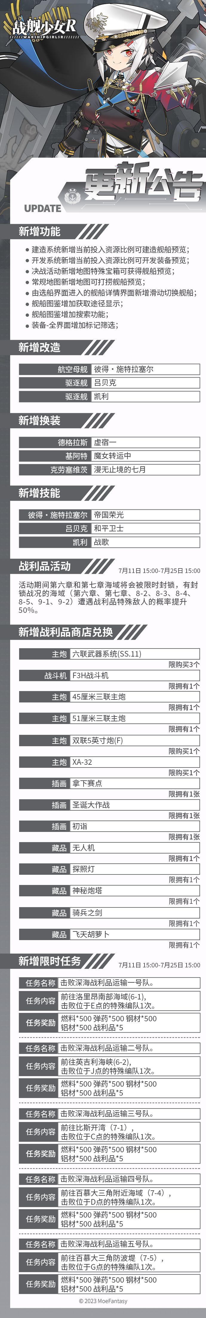 2023.7.11 维护公告 & 战利品活动公告