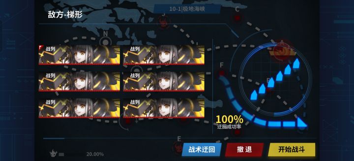 这次更新海妈技能加强了之后就可以出现100%迂回成功了,代码突破了令人安心的金色100%新主线10-1居然有练级点,只要驻守J和E之后就是A点全战列和C点夜战全轻母